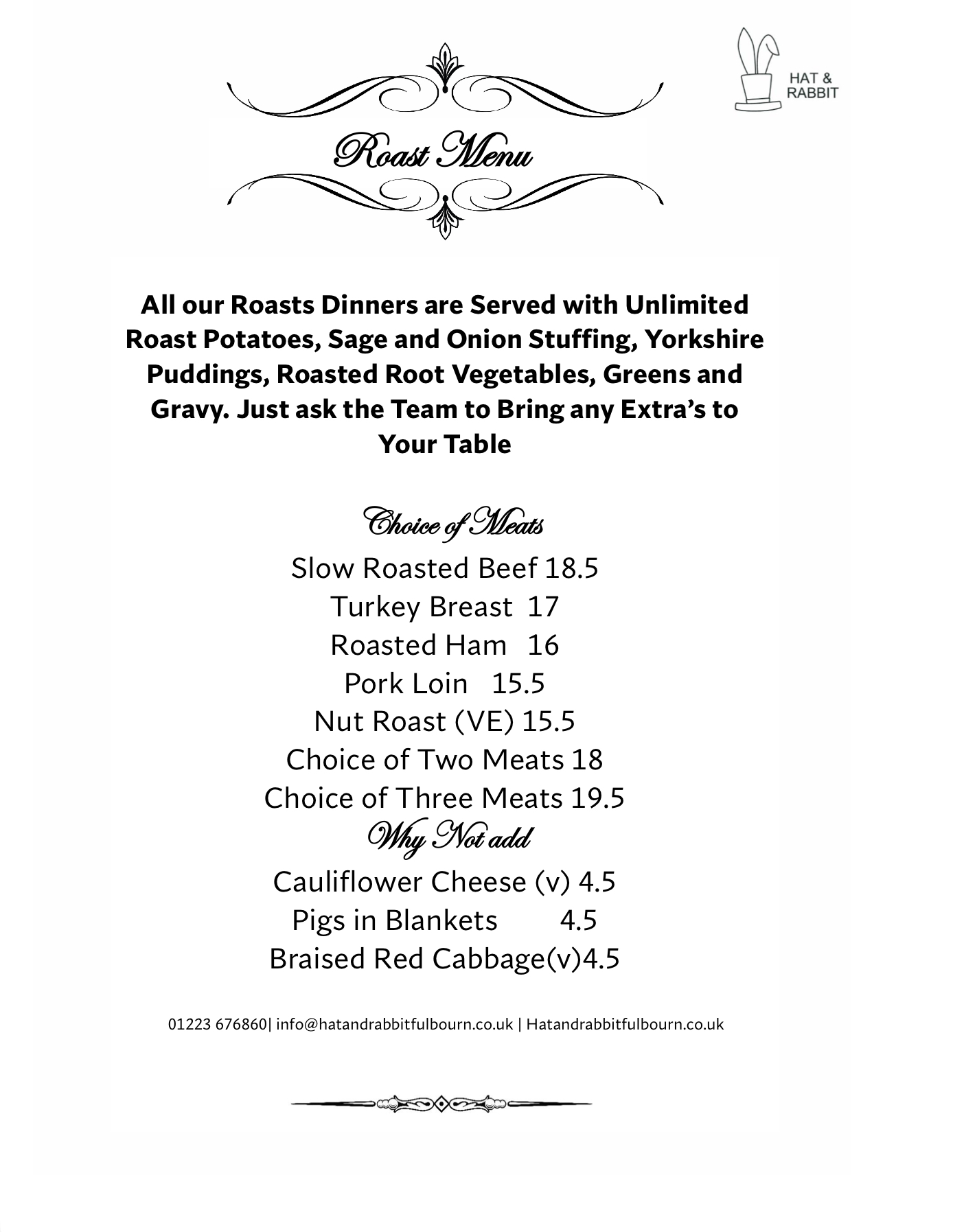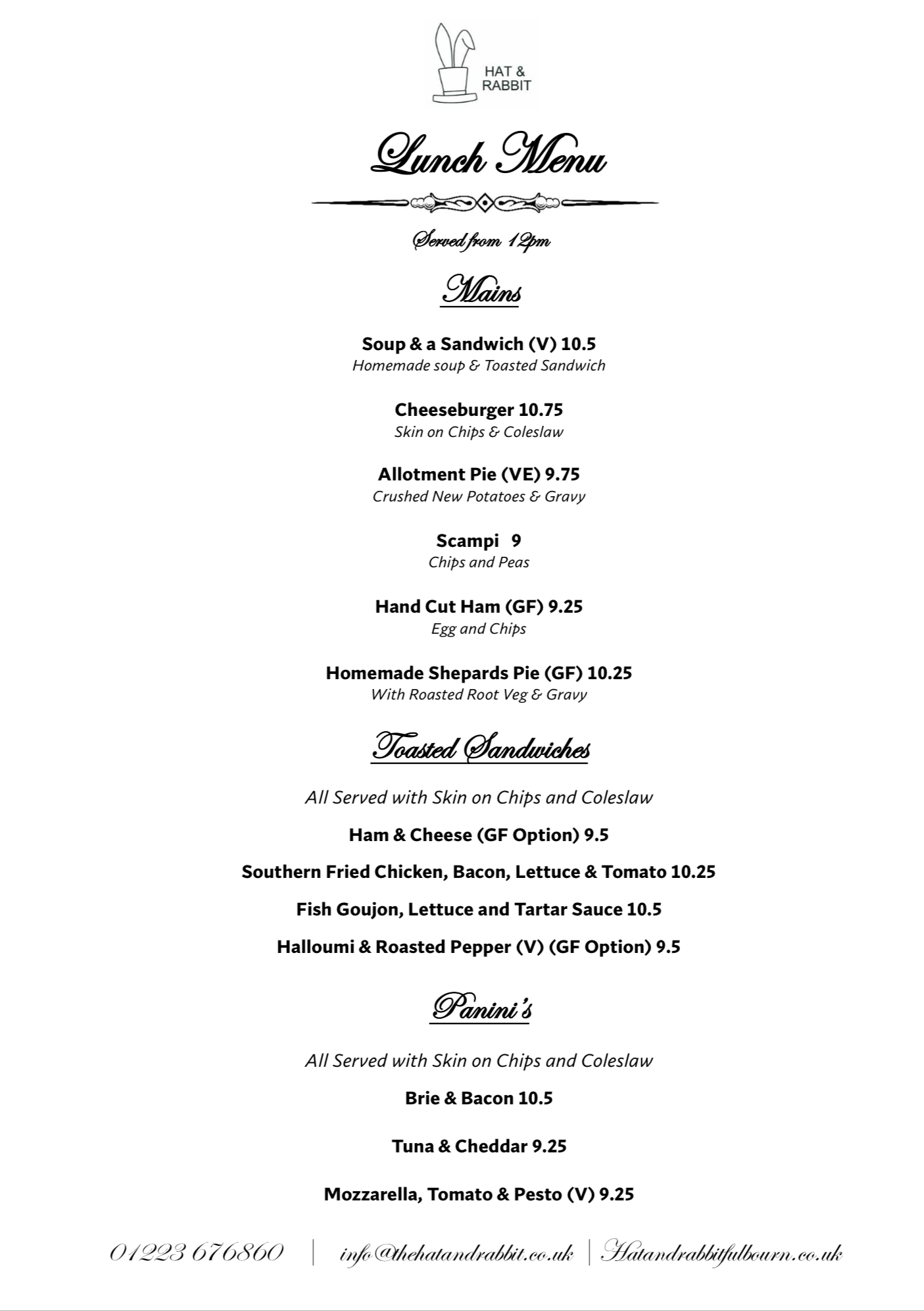 Food is served every day at The Hat and Rabbit and our Sunday roast is not only legendary, but also extremely popular, so please book a table to avoid disappointment- click here.